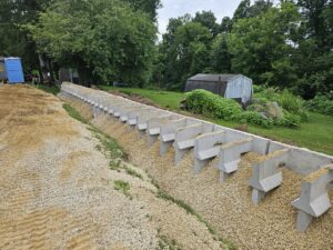 A customer reached out about building a retaining wall behind their shed to prepare for a new storage lean-to. They were initially considering hauling in massive 3,000-lb concrete blocks, but I knew we could offer a better solution with the Forix system.